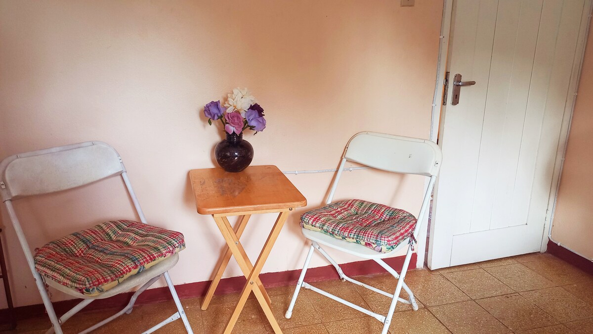 double/twin room with one double bed and one single bed could fit 3 people. Sharing bathroom and shower outside, everything DIY and records theme decorated