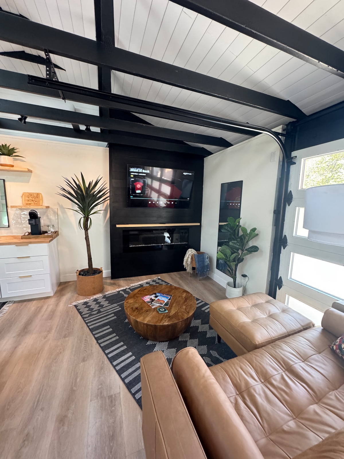 The stylish property is located in downtown Prescott, just a block from the Courthouse Square. At 650 sq ft, the suite is an entire home away from home, ideal for couples, small families, solo adventurers and business travelers. The master bedroom boasts a king size bed with a luxury firm Saatva mattress. The en suite bathroom features a walk-in shower with a rainfall shower head and glass panel for a spa-like feel. Brew a cup of coffee or prepare an entire meal in the brand-new kitchen stocked to open a bottle of wine or host guests for dinner. This living space has everything to make you feel at home: high speed WiFi, 55” Samsung smart TV, YouTubeTV for live entertainment, ability to log into your Streaming Services through RoKu, washer and dryer, Keurig, drip coffee pot & espresso machine.