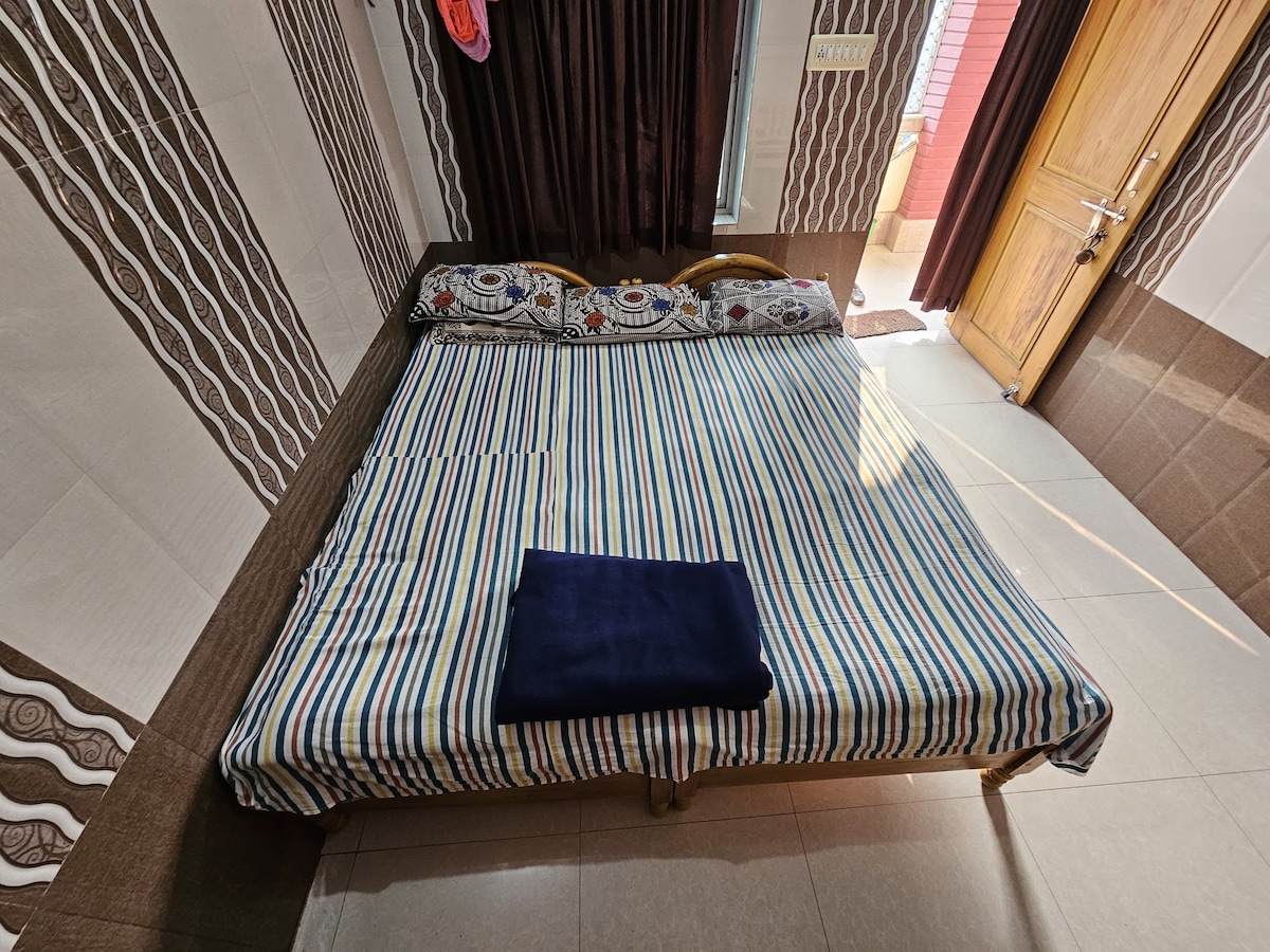 Experience comfort in our compact yet inviting room with 1 queen size bed and 1 bunk bed. Just a 5-minute walk from the beach, it's both clean and creatively adorned. Enjoy modern amenities like AC and a geyser. Step onto the accessible terrace surrounded by nature, offering a mild view of the sea beach and a clear sight of the Jagannath Temple.