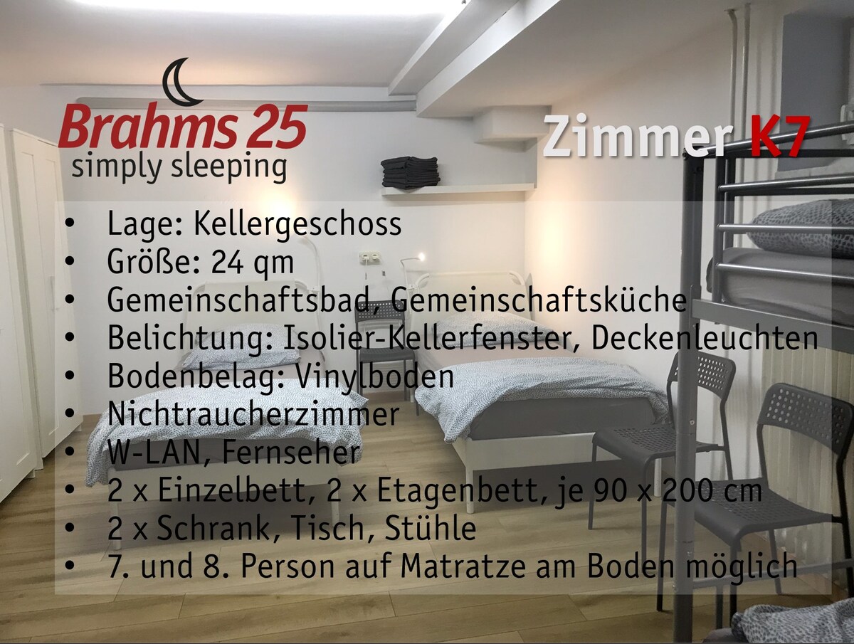 Brahms 25 is a simple accommodation with no great comfort. Price-conscious guests of all ages come to us, many stay for weeks and months for work and training or are looking for accommodation in Regensburg. During the week we are gladly booked by craft companies. Especially in summer we also have many cyclists and traveling families and couples as guests.