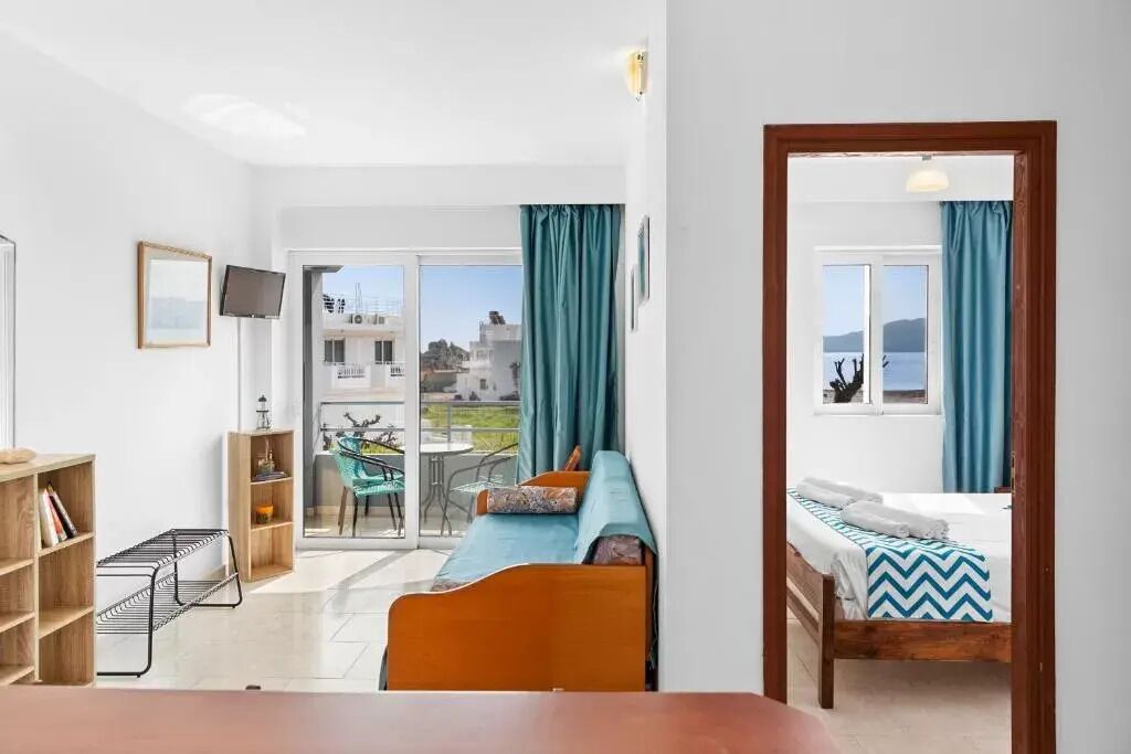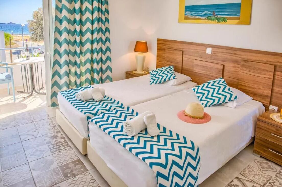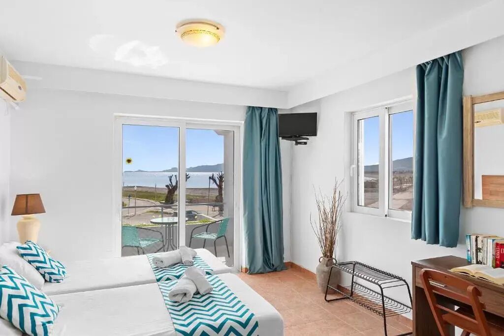 This fully air-conditioned room offers a comfortable double bed and a balcony that looks straight to the incredible beach. Also, every room has coffee and tea facilities and a freezer as well as a bathroom with a shower. There’s free Wi-Fi access throughout the property. The scenery is quite ideal to empty your mind and enjoy your holidays in Rhodes. The rooms are placed in front of the beach so guests can enjoy every minute of their holidays next to the sea. On the ground floor, there’s the Mojito beach bar where you can enjoy every day a delicious breakfast with an extra charge of only 10 euros per person. There’s, also, a beach volley where you can have fun with your loved ones.