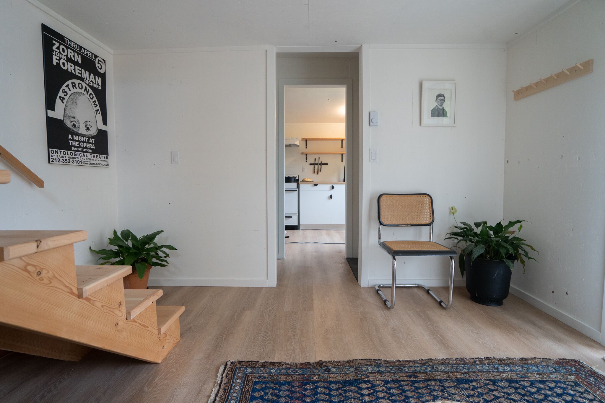 Your private entrance opens from a spacious deck into a sunny room with 14-foot ceilings. The west coast decor includes brand new, quality furnishings. You’ll find a walnut table with two comfy chairs for dining or working remotely. The top-of-the-line queen-size mattress provides the best possible back support and the deepest of sleeps. A large, four-drawer bureau gives you plenty of space to store your clothing and personal belongings.