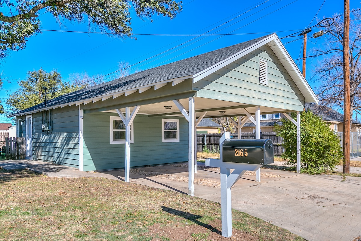 Welcome to our newly renovated 2-bedroom, 1-bath guesthouse in the heart of San Angelo! Enjoy modern appliances, smart TVs, cozy gas fireplace, and a dining area for 4. Fenced backyard (shared) and a carport add convenience. Perfect for relaxing stays, visiting Angelo State University, or exploring San Angelo!