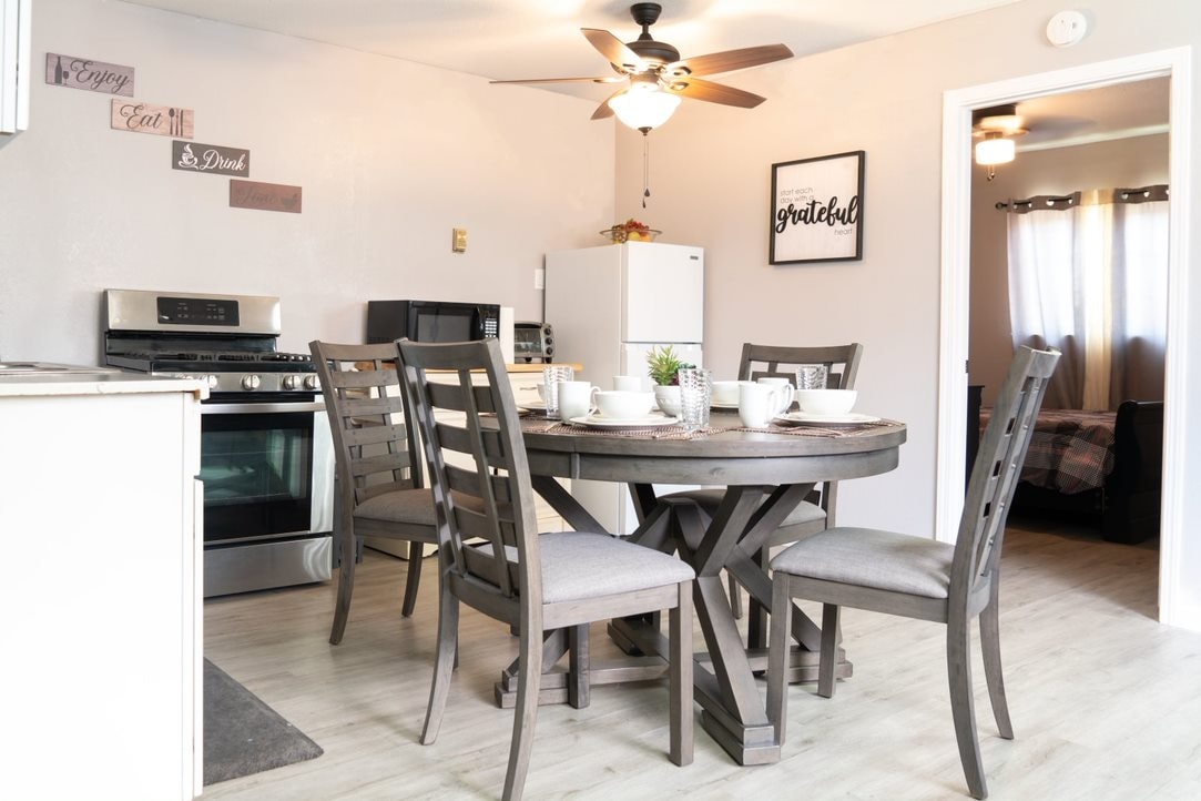 Looking for a place to stay? Check out this super cool guest house located in the back of the main house. It includes two bedrooms one with a king sized bed the other with a queen, and one full bathroom. You'll enjoy the comfort of having your own private place which also includes a big walk in pantry and it's own kitchenett. It's also pet friendly!