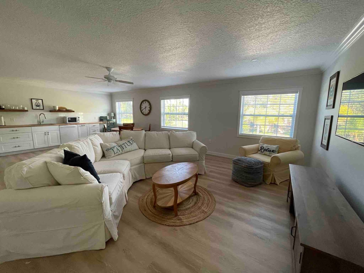 Captain's Quarters is a bright, open and private space with beautiful views of Palma Sola Park. Cozy 1 bedroom with 1 queen bed, family room, kitchenette, washer/dryer and a designated workspace.