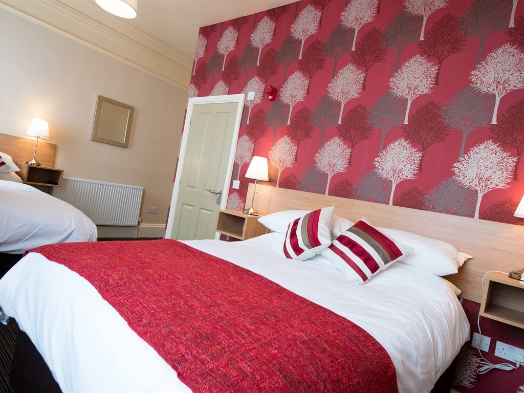 The Headlands Hotel is located in the heart of Scarborough's beautiful North Bay looking across towards Scarborough Castle and has a wide range of spotlessly clean rooms available, all of which are en-suite and have breakfast included in the rate. Breakfast is served in our bright and spacious dining room using fresh local produce and we also have a fully licensed bar that is open every evening serving drinks and food. We are a family friendly hotel and have two recently refurbished Family Rooms available that sleep up to 5 people (max 2 adults) in addition to our range of Standard and Superior Twin and Double Room options. Superior and Family Rooms are located at the front of the building and have views across to the castle headland and sea. All our rooms are going through a refurbishment program that will see all 13 rooms updated and refreshed by April 2022. Parking is not an issue, we have a small car park onsite and all the on street parking around the hotel is free of charge. It's just a five minute walk from the hotel to the North Bay Beach, Peasholm Park, Scarborough Open Air Theater and Alpamare Water Park and there are bars and restaurants close by. The town center and South Bay beach are both within easy reach of the hotel.