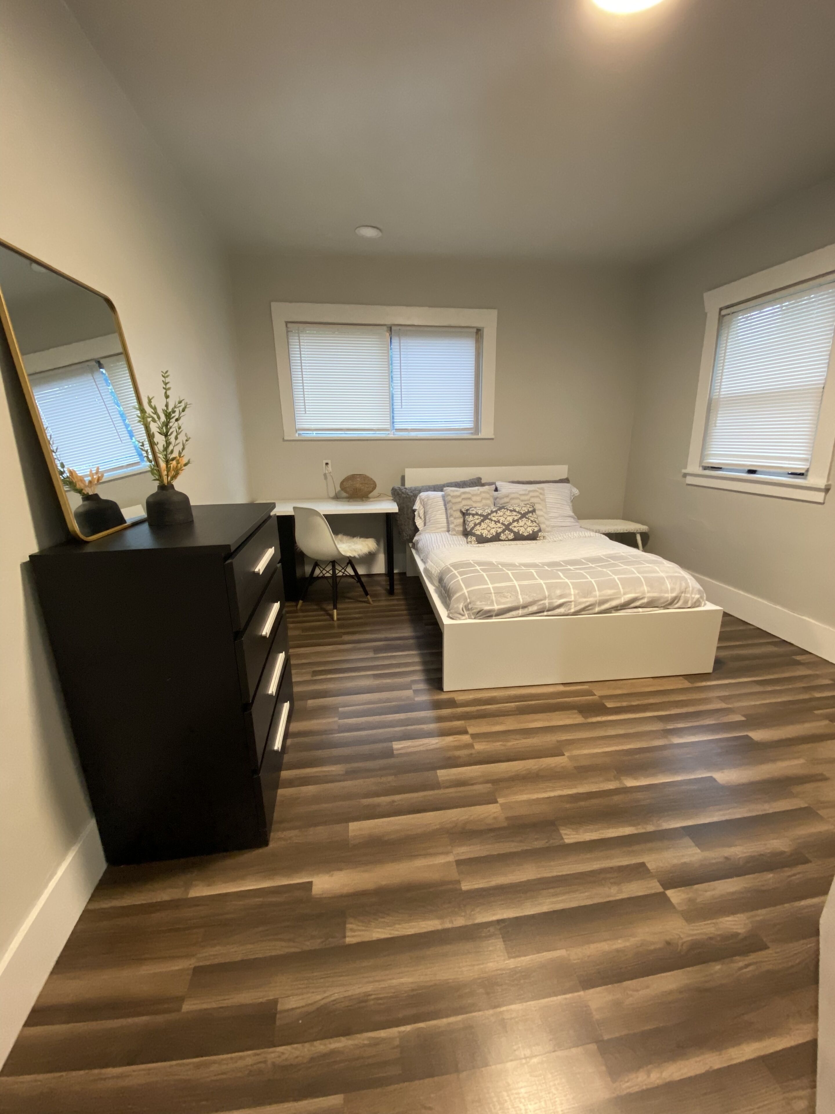 The comfortable queen bed with Casper mattress will have you wanting to stay in bed.