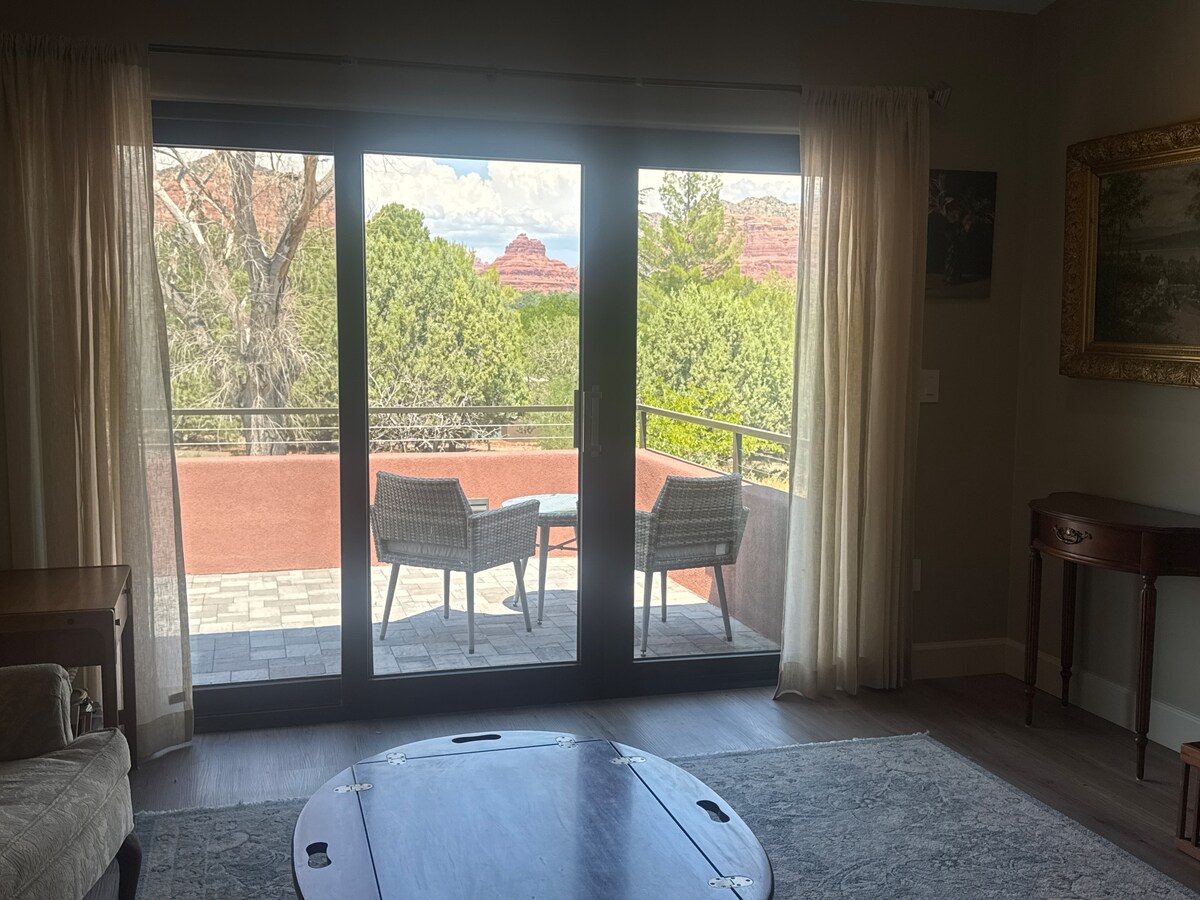 Finally, the outdoor areas of this home provide the opportunity to view exceptional red rock formations. The backyard provides the opportunity to relax in the hot tub, have conversations around the fire pit while taking in the unique Sedona landscape.