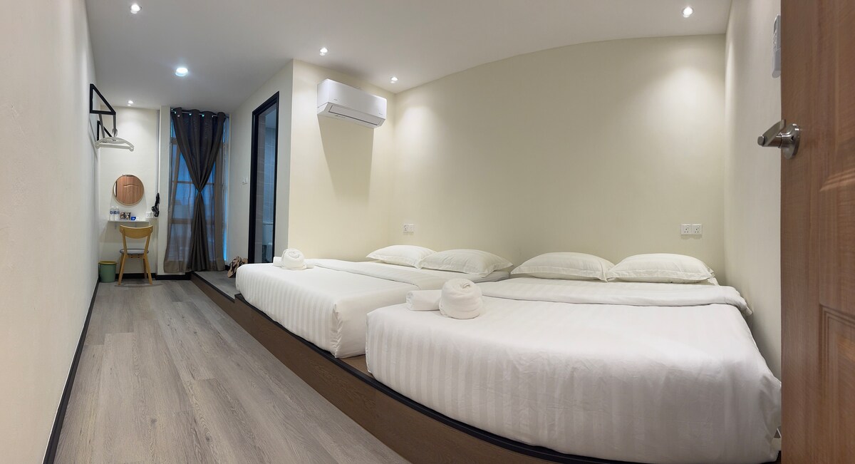 🎇Medium room Queen size + single bad + air conditioning + fan