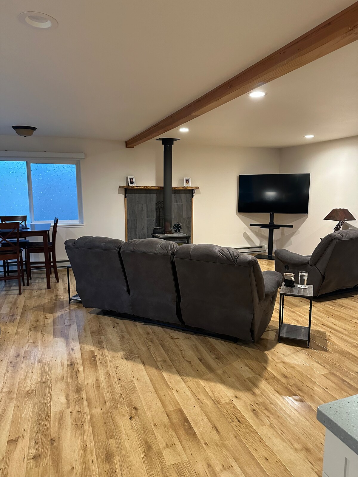 Mt. Benson Accommodation is a beautifully decorated private apartment style suite that offers a private bathroom, fully equipped kitchen, dining and living areas. Suite offers King size bed (bedroom), queen size sleeping sofa (living room), Twin size “day bed” and an additional Twin size portable bed.