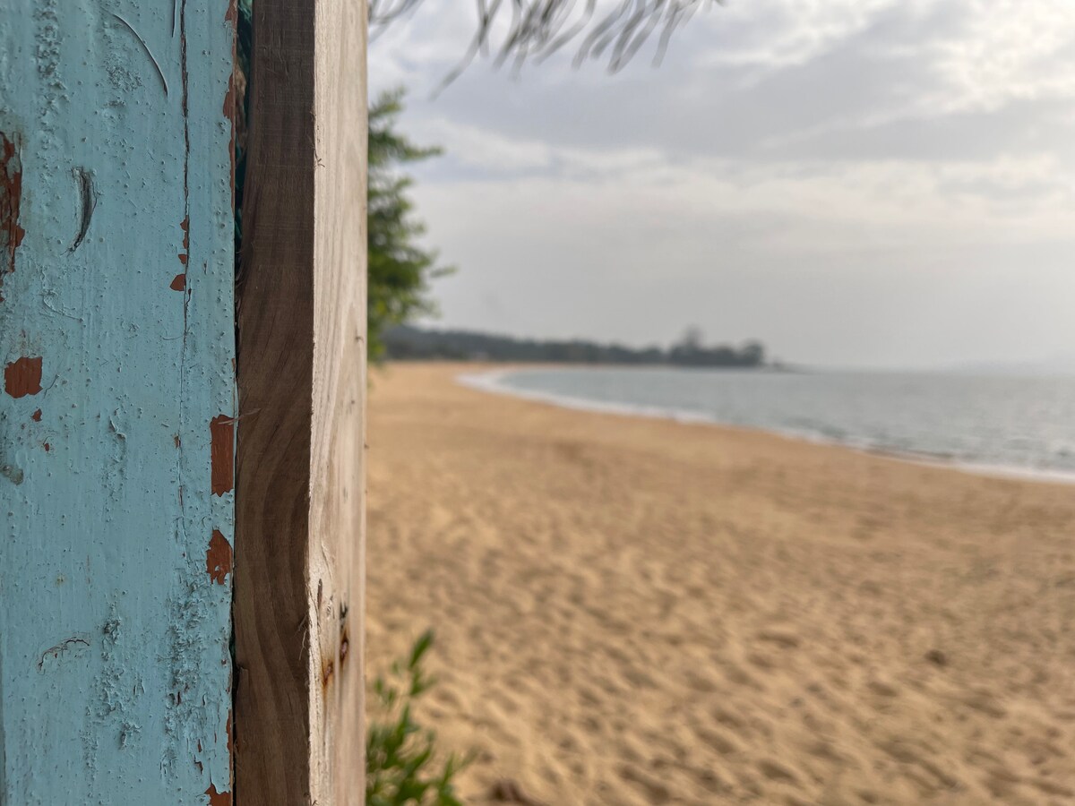 The house is built on the beach, so when you step outside you are directly in our green beach garden. Take a few steps more and dive into the sea.