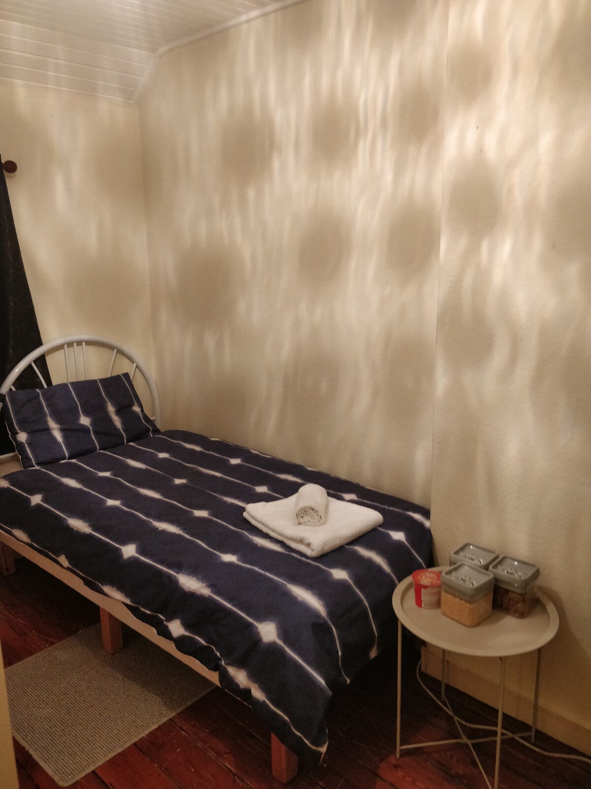 Guests have a private twin room, private bathroom (with hot shower) and private living room.