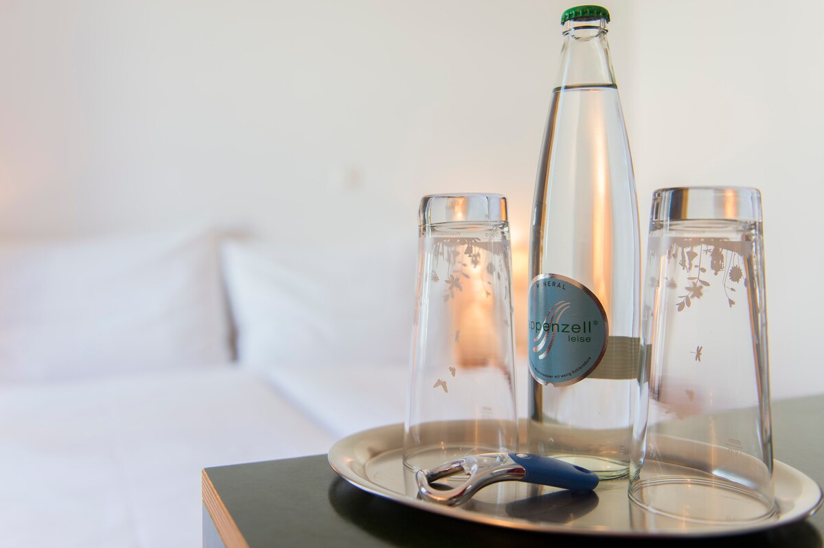 The hotel has ten rooms to the quieter mountain side on the ground and first floor. Families can book room with a connecting door. The rooms are equipped with soundproof windows, shower/toilet and TV/radio. On request, you can obtain a phone at the reception as well as an access code for the free Wi-Fi.