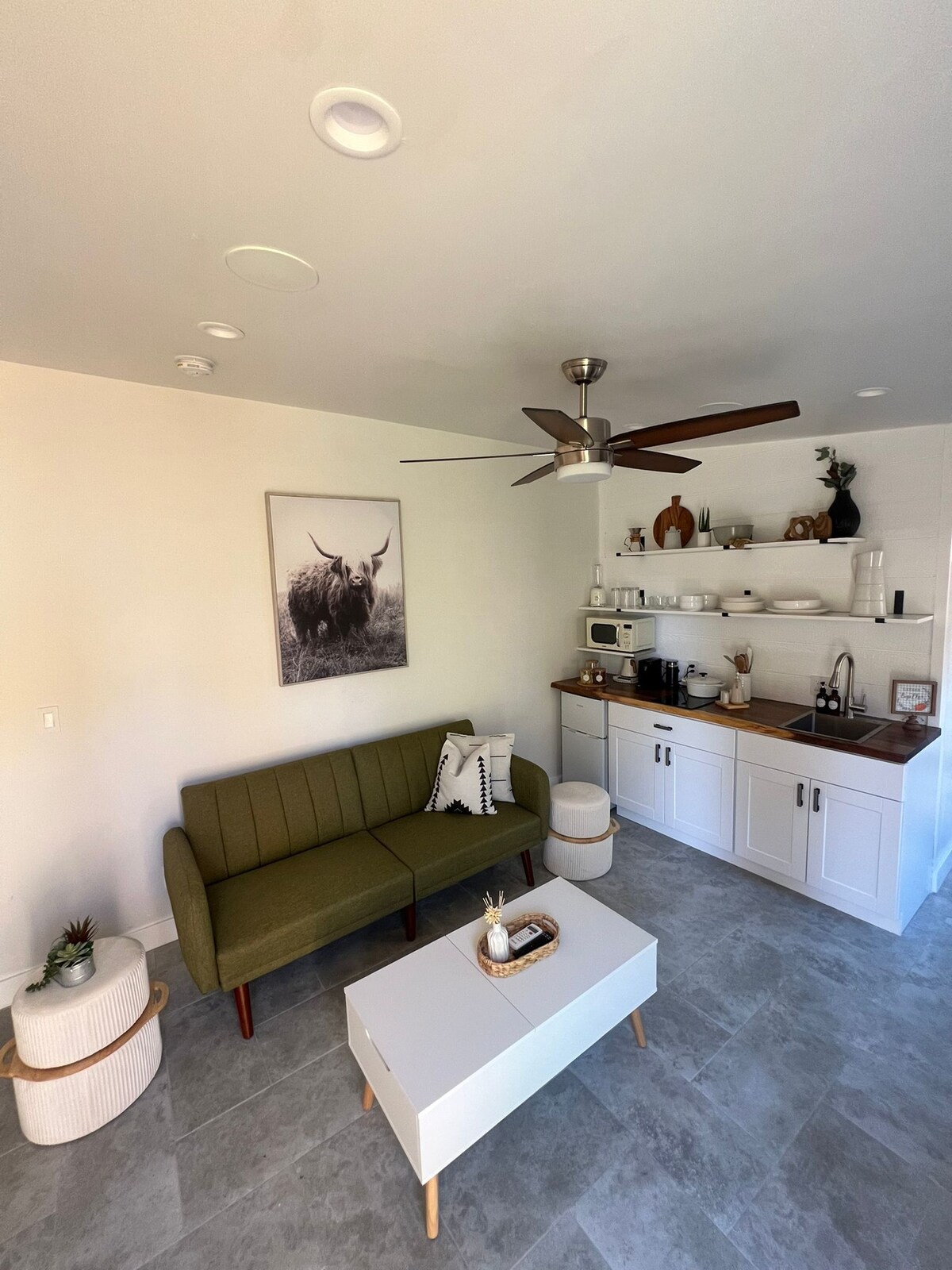 The Olive house is a perfect place for you to stay. Beautifully designed to make the best possible experience for your weekend. It is a unique but modern space with everything you need. It has a space for four people, great patio and a comfortable fire peat for your summer nights, and many more amenities!