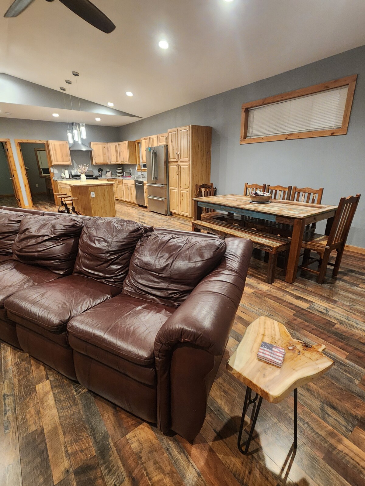 The whole group will be comfortable in this spacious and unique space. This 2 bedroom unit is located in a peaceful setting and minutes from Deer Lake boat launch. A mix of wood and modern finishes add to its charm. Everyday is a celebration and honor with its Red White and Blue of the American Dream, when you stay with us.