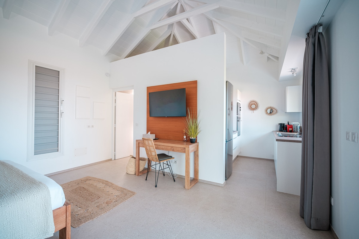Accommodation with kitchen ideally located on a hill, 3 minutes from the center of Gustavia with its port its shops, bars and restaurants, 4 minutes from the airport and Saint Jean beach.