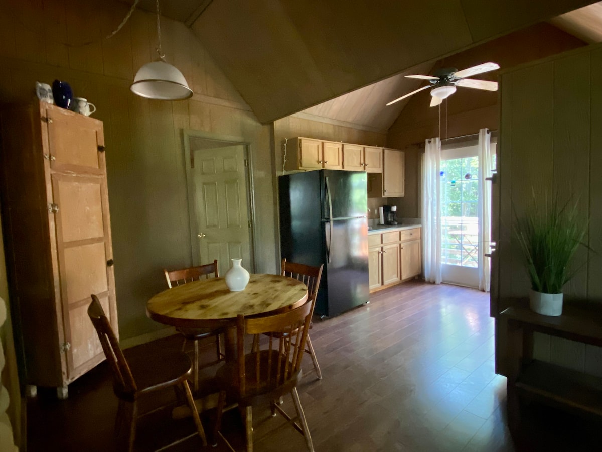 Private cabin, with bath, located in a quiet country setting, close to town and easy access to two Interstate highways. Comfy queen bed, Climate control with state of the art Trane system. Mini-fridge, microwave, and Keurig coffee maker are included. High speed wireless internet and basic cable TV. All varieties of people are welcome here.