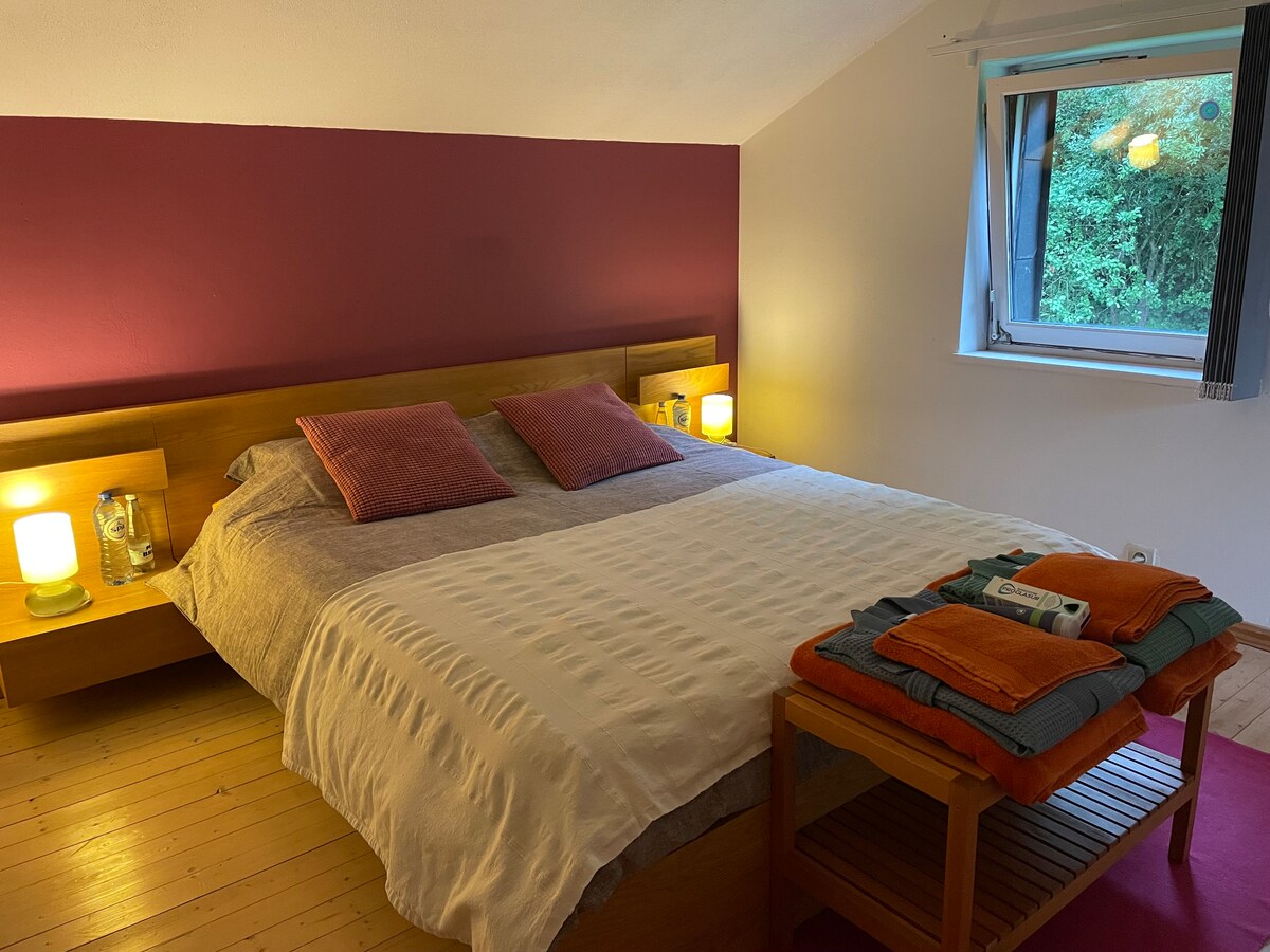 We provide two bedrooms, a large bathroom with Italian shower and bathtub with views of nature (see photos) used only by our hosts (we have a second bathroom and toilet for us). A third bedroom converted into a cozy living room is also offered. On request, it can be suitable as a room for 1 person.