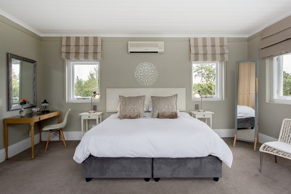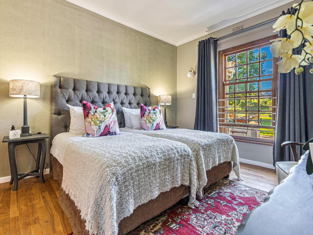 Located on the 2nd floor, this spacious tower room boasts panoramic views of the garden, the Jonkershoek mountain range & Stellenbosch mountain.