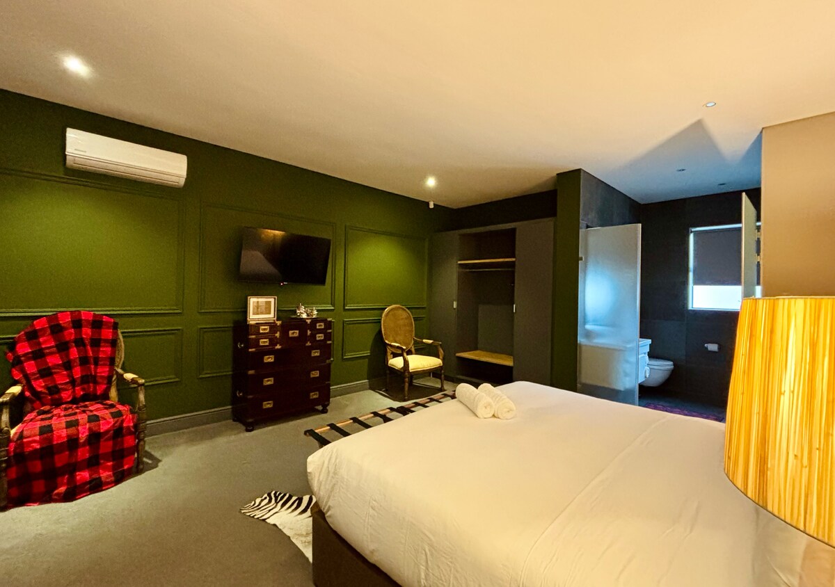The tastefully decorated spacious and cosy bedroom consists of a sitting area with full satellite dstv, aircon, free WiFi, queen size bed, and an ensuite bathroom shower only.