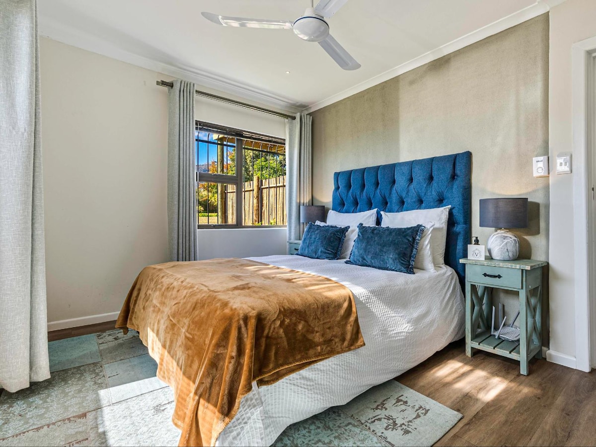 This beautiful ideally located Garden Suite for two has its own driveway, carport leading into a private and relaxing olive garden and braai, and oak trees along the river.