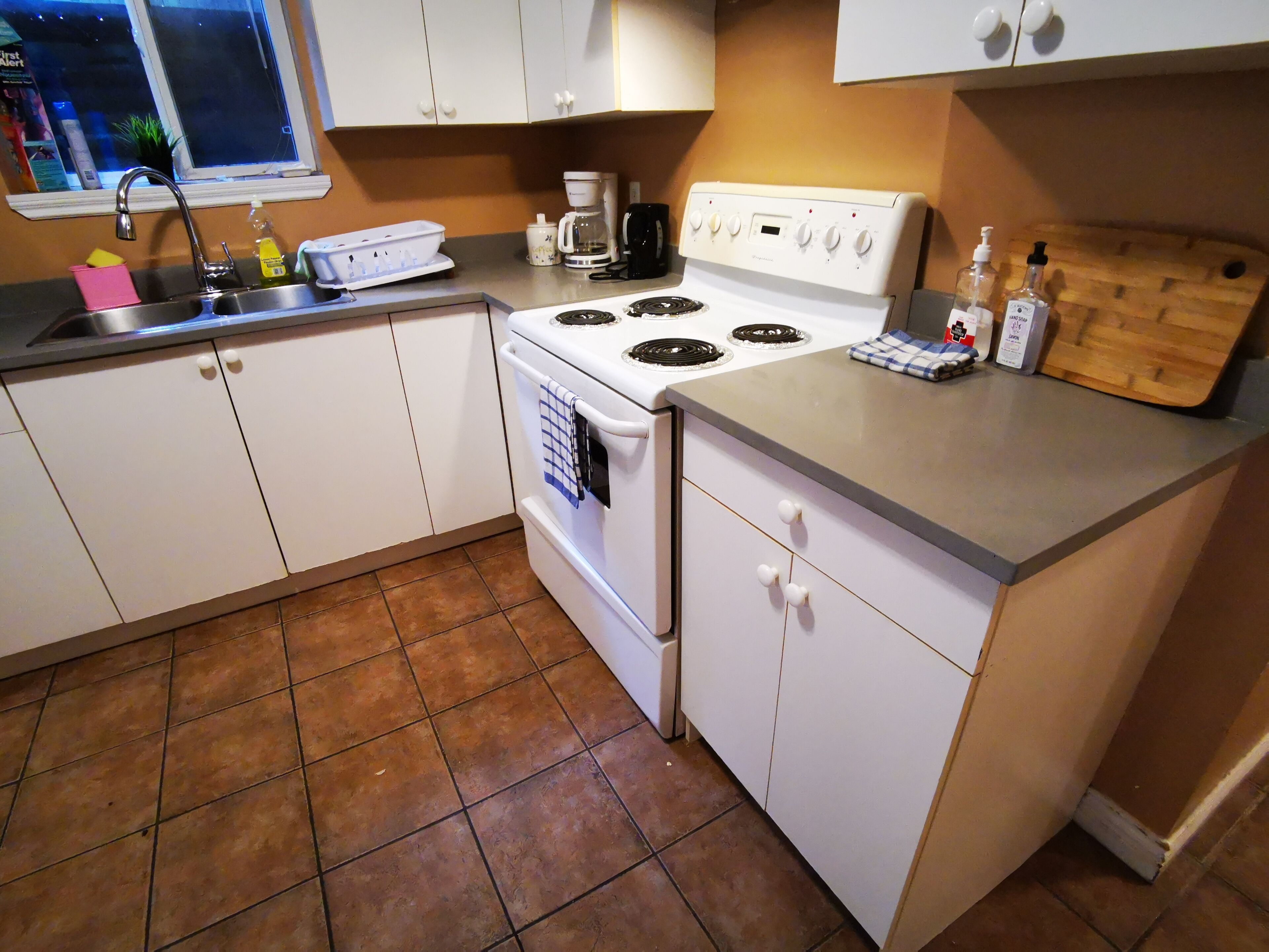 HD TV and Telus Box. Clear and bright kitchen with necessary utensils; also include microwave, toaster and coffee maker etc.