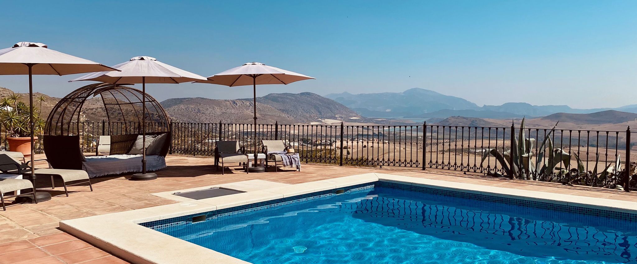 Do you want to completely relax? Then Casa La Calera is the place for you! Here you can enjoy absolute peace and authentic Andalusia. Casa La Calera is located to the south, so you can enjoy the sun all day long and the beautiful panoramic views over the Guadalhorce Valley and the mountains of the Caminito Del Rey. Our beautiful swimming pool will keep you cool and the large terraces with sun loungers offer you peace and privacy to relax in the sun or shade and completely switch off.