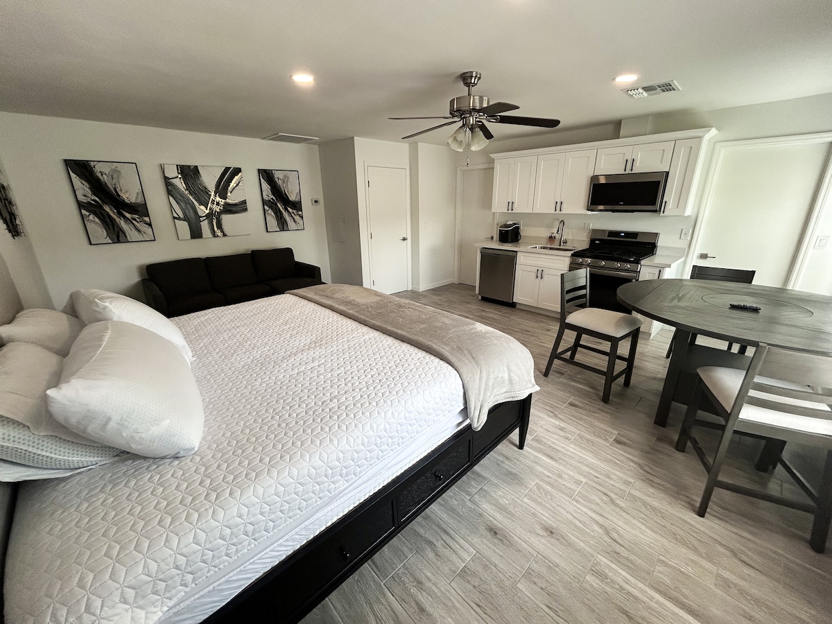 Situated in a quiet neighborhood, the studio is just a short drive from local attractions, restaurants, and shops. Whether you’re here for business or leisure, you’ll find convenience and comfort during your stay.