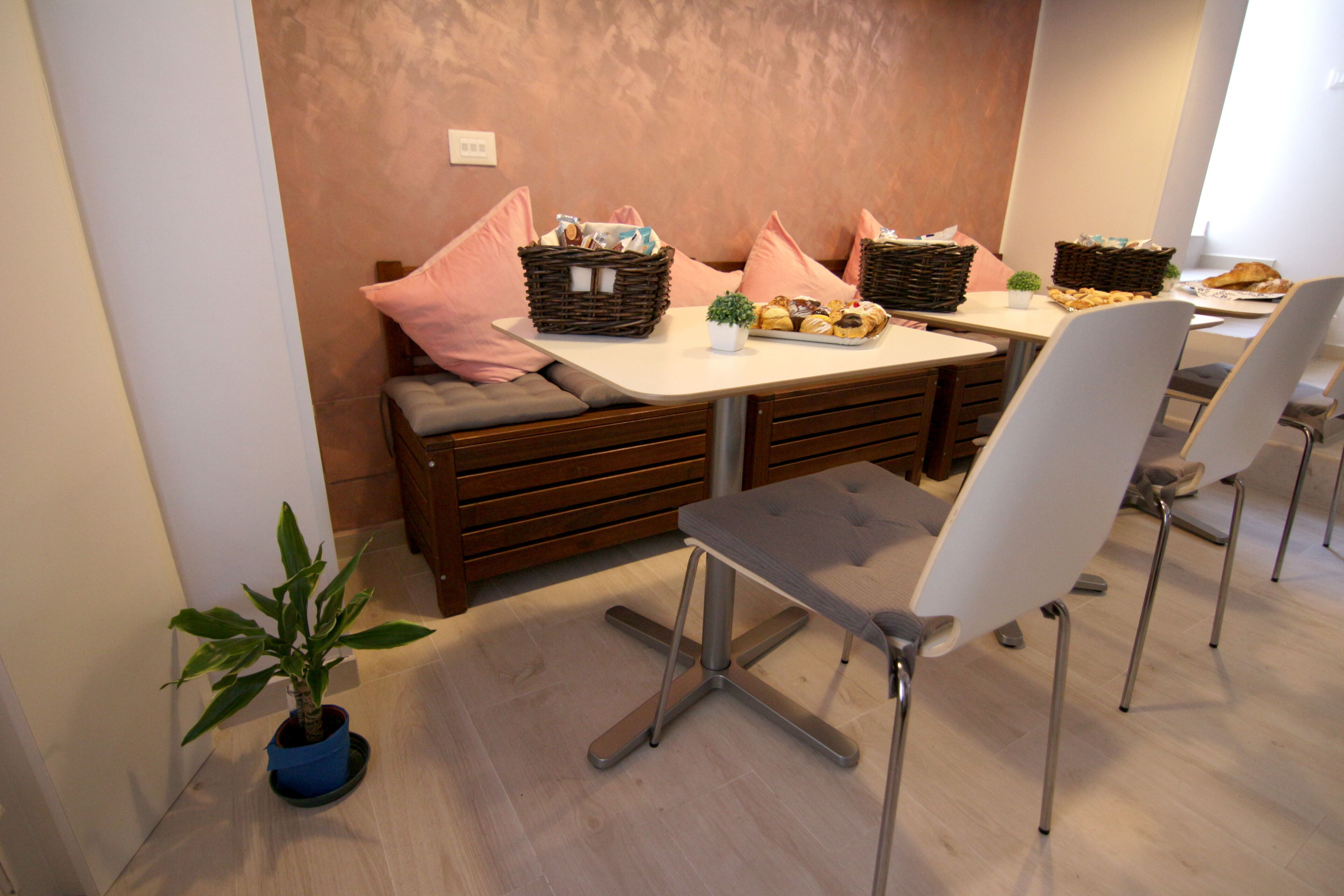 The entrance has a common area with comfortable seating and a side table equipped with an espresso machine and pods offered to our guests for a warm welcome to Italian.