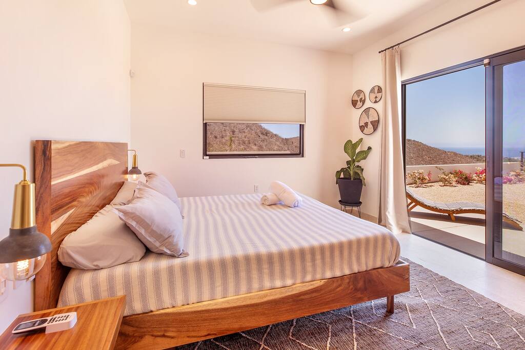 The whole second story of the main Casa is yours with the best views (360 degrees!) of Todos Santos, the Sierra Laguna mountains, La Poza lagoon, and the Pacific Ocean. There is a full kitchen, but there is also a small kitchen in your room so that you can make coffee, then sit in bed and watch the whales spout and play right out your window! There is a dining table in your room if you wish to sit indoors, but there is a whole 800sq ft deck for sitting, dining, or playing. This is the most versatile unit and our past guests have said it's their favorite of the whole place!