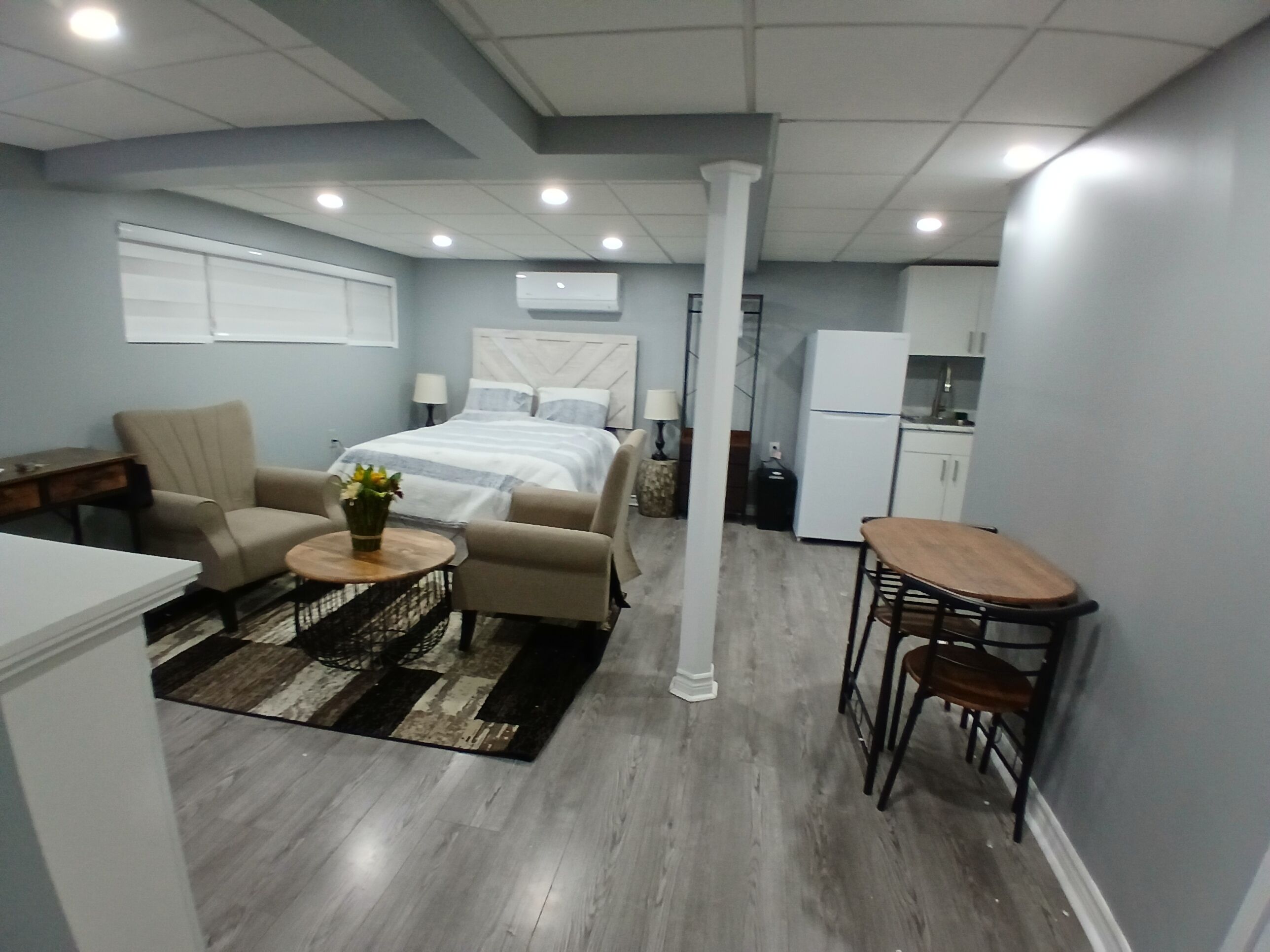 We have a spacious suite on the lower level including Large bedroom with Queen Bed, Private bathroom.