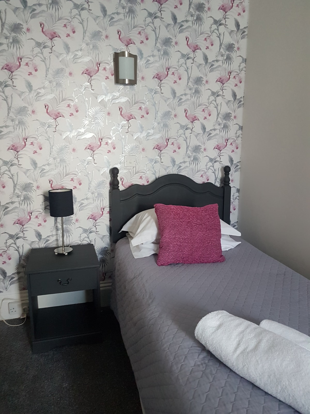We have two single rooms, both being situated on the first floor. Both with en-suite facilities. Tea and coffee making facilities are also available as is fresh water which are all replenished daily. Both rooms have desks and chairs and a Freeview TV with free WiFi access.
