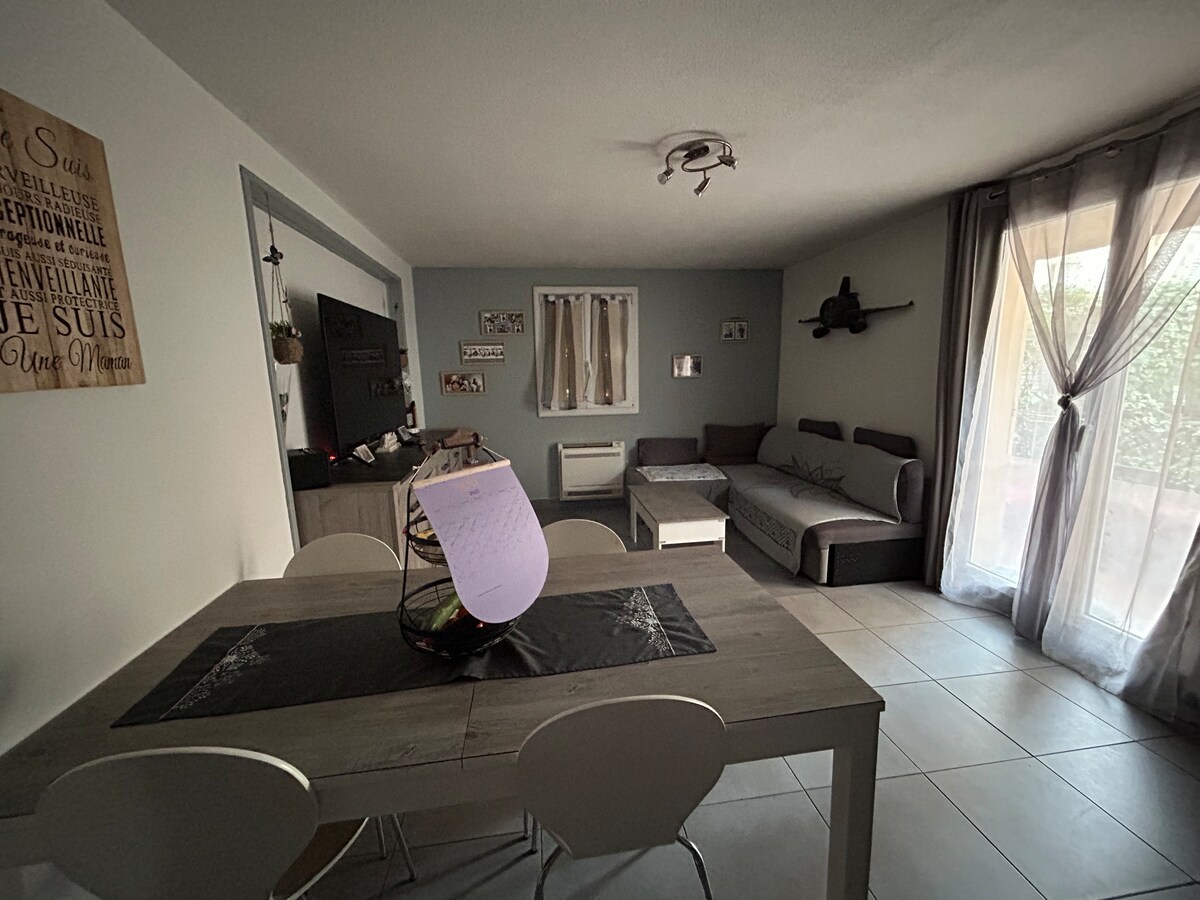 Come and relax in this little paradise, enjoying an outdoor area. You will have access to the shared pool with the owners (except from July 1 to August 31). Climbing spots next door!!