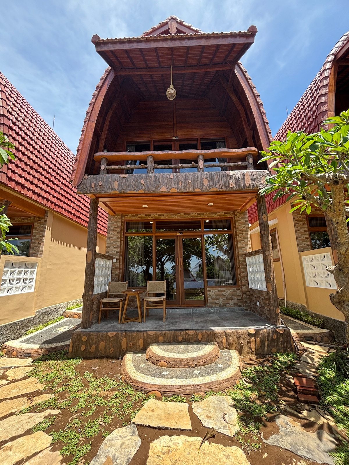 IMPORTANT: Lots of stairs and only reachable by motorbike. Watch Padang Padang on your right and outside corner on your left, 2 volcanos visible from your room. A truly Indonesian experience.