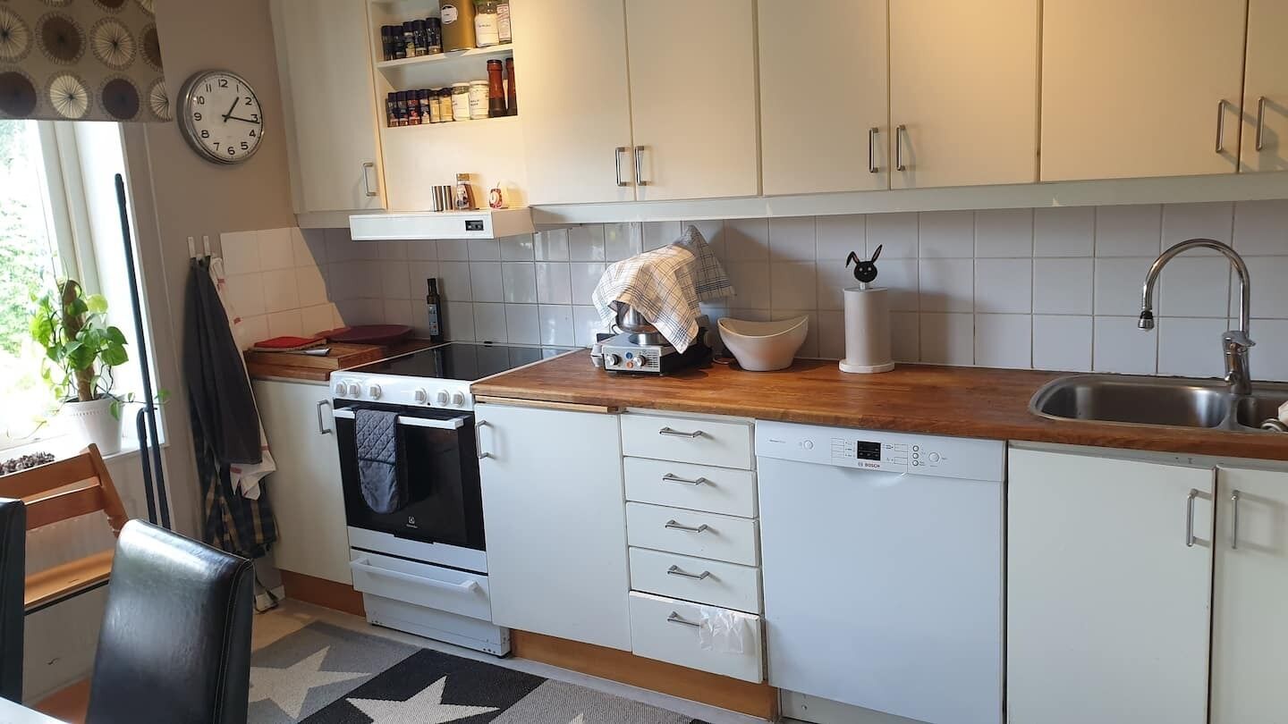 5 minutes walk to the shopping area Stenhagen Centrum with several grocery stores, liquor stores, pharmacies, fashion and restaurants and frequent bus service into Uppsala.