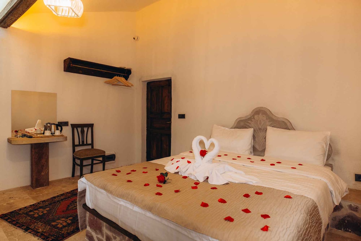Our 600-year-old historic building in UNESCO's World Heritage listed Sinasos and its magnificent historic texture pristine hotel. One of the most important historical features of our hotel is that the Greeks who migrated from here in 1924 lived in this house until the departure of the last Sinasos Mayor, Küçük Rizo. SİNASOS, where there are 60 churches in the area, is called MUSTAFAPAŞA village. Our hotel has a cave, rock, wooden texture with its historical features and the most beautiful location of Mustafapaşa (SİNASOS).