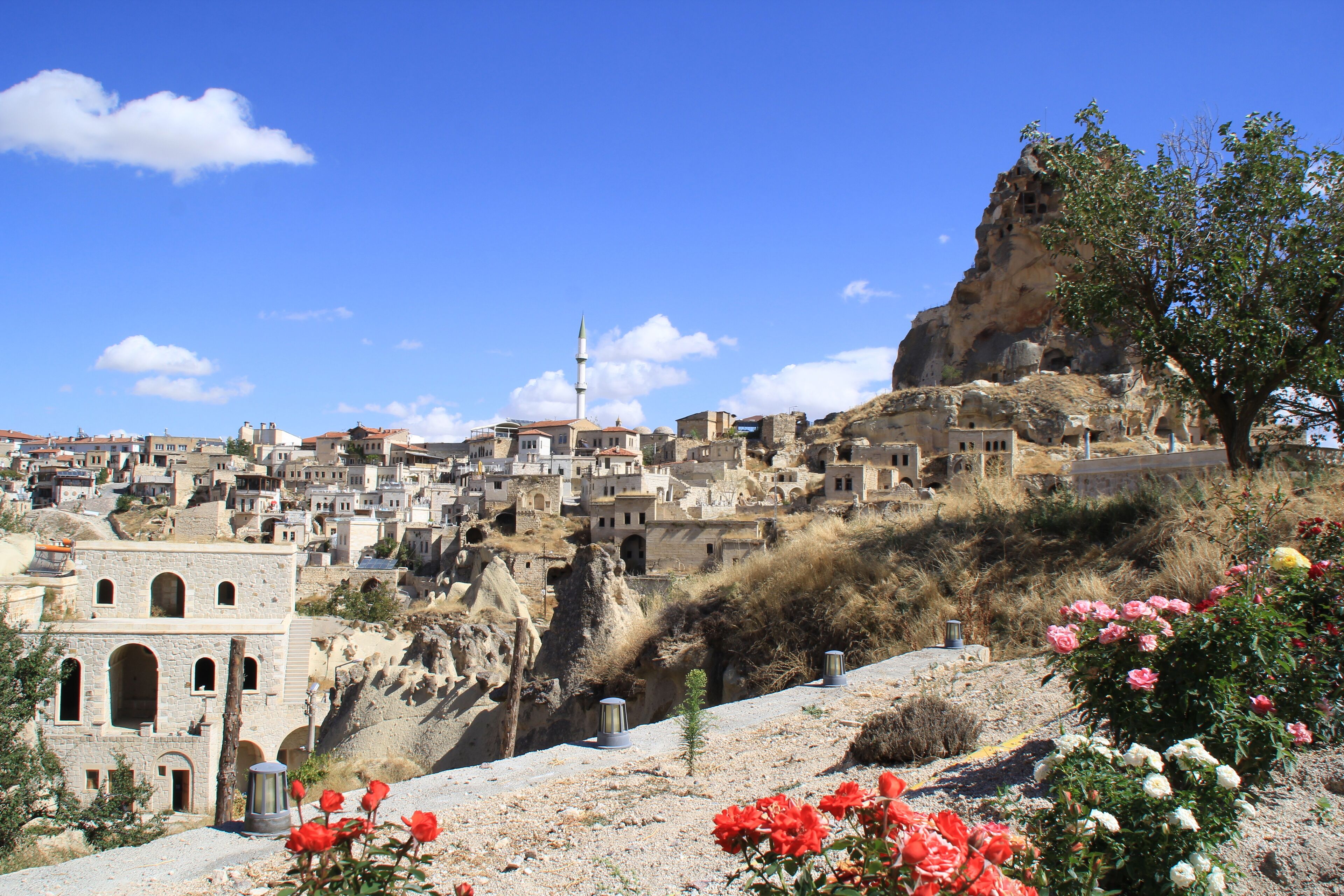 Close to everywhere in the middle of Cappadocia, Ortahisar Town, just 1 min walk to the bazaar center, in the National Park, just 4 km to the Goreme Open Air Museum,