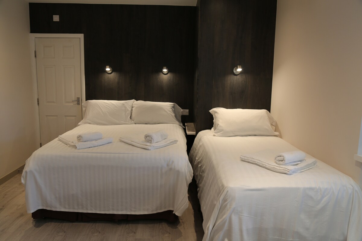 Situated on the ground floor, this spacious family room has been recently decorated and has one double and one single bed.