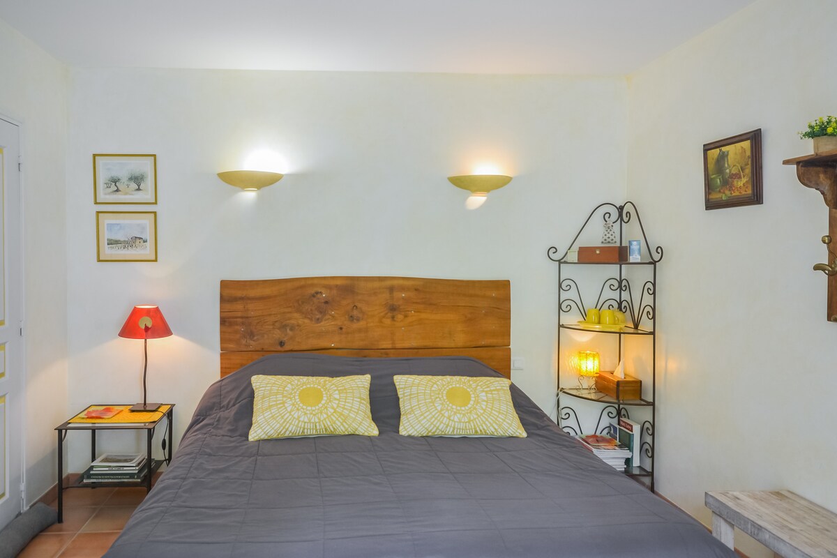 Immerse yourself in the Provençal authenticity at the heart of the village of Venasque, labeled as one of the "Most Beautiful Villages in France," by staying in our room "La Nesque." Experience complete privacy, as this room is located independently from the main guesthouse with a separate entrance.