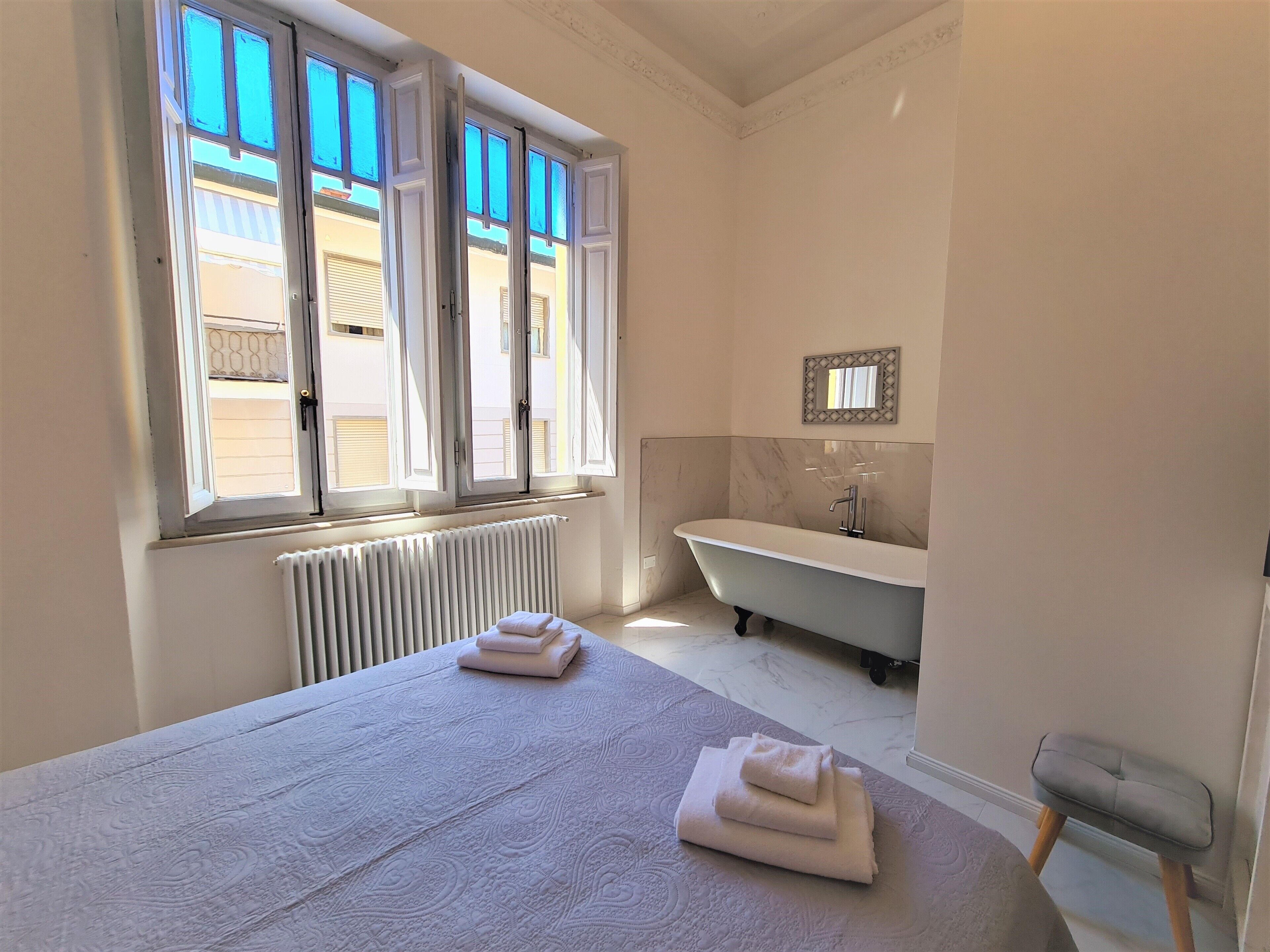 Welcome to our luxury suite in Viareggio, where comfort and style meet to offer you an unforgettable stay. Our cast iron tub will give you moments of relaxation and well-being, while you enjoy the breathtaking view of the sea. Book your dream holiday now and let yourself be pampered by our hospitality and the exclusive services that await you. We are waiting for you to let you live a unique and unforgettable experience in Viareggio.
