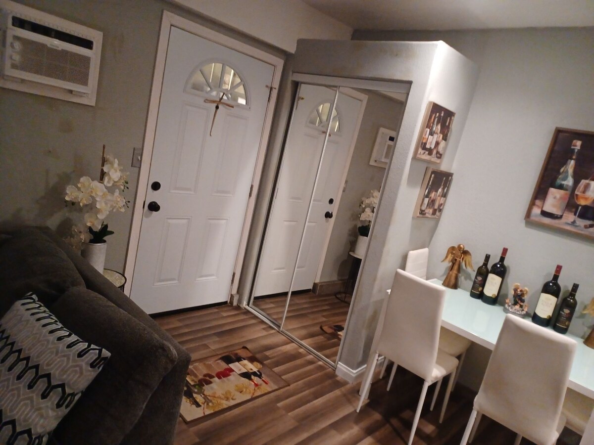 Cozy little studio in a cul-de-sac. Modern design with a touch of classic style. Complete with a kitchenette, bathroom and dining area. Spacious enough for one person but cozy for two people. Also perfect for travelling professionals for monthly stays with relaxing atmosphere. Within a few miles to restaurant row with franchise restaurants such as BJ's, & Texas Roadhouse. St Marys hospital is 20 min away as well as other medical facilities. Southern California Logistics airport is 10 min away.