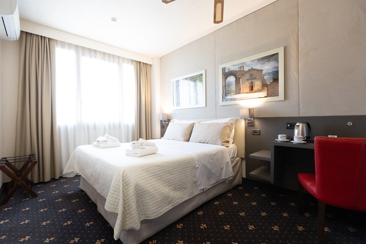 The room includes a double bed, a maximum of two guests. Complete with private bathroom and air conditioning.