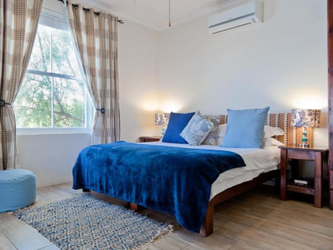 This room contains a king-size bed that can be converted to 2 single beds, a private bathroom, and an open-plan kitchenette and living area. The room has air-con and a flat-screen TV with DStv. An extra guest can be accommodated on request.
