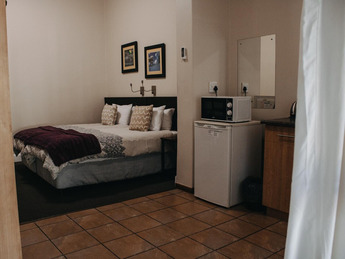 Ideal for 2 guests this neat economy room is air-conditioned and has a king-size bed, a private bathroom, TV with DStv, bar fridge, tea and coffee station, and a private terrace.
