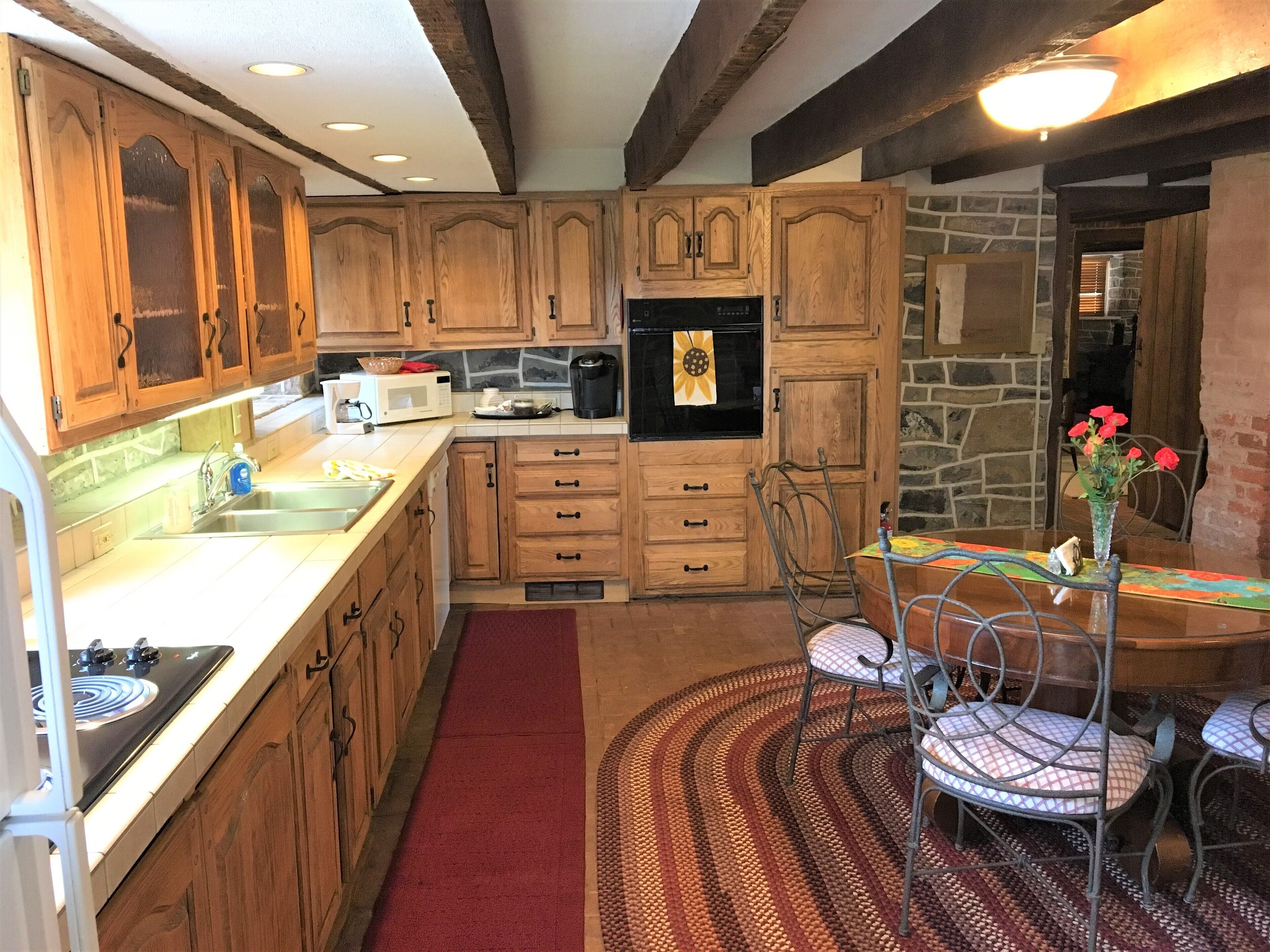 Located in the former kitchen built in 1820, this suite is in a separate private historic building and features a Queen size bed, living room with 43" HD Smart television, couch, and wing-back chair, private bath with shower, and in a separate room, a two-person Jacuzzi. We pamper you with a full breakfast served to your door or on the brick patio just outside your door each morning! Additional amenities include private refrigerator with complimentary soda, juices, and waters, hair dryer, and (as in all our rooms) bath salts, shower gel, and shampoo. This suite offers you the privacy of being in a separate building, yet you're only ten feet from the Main House. No steps to enter the first floor of this suite. Upstairs, two twin beds make this Suite suitable for children under 12 & family traveling together. Additional fee for more than two people.