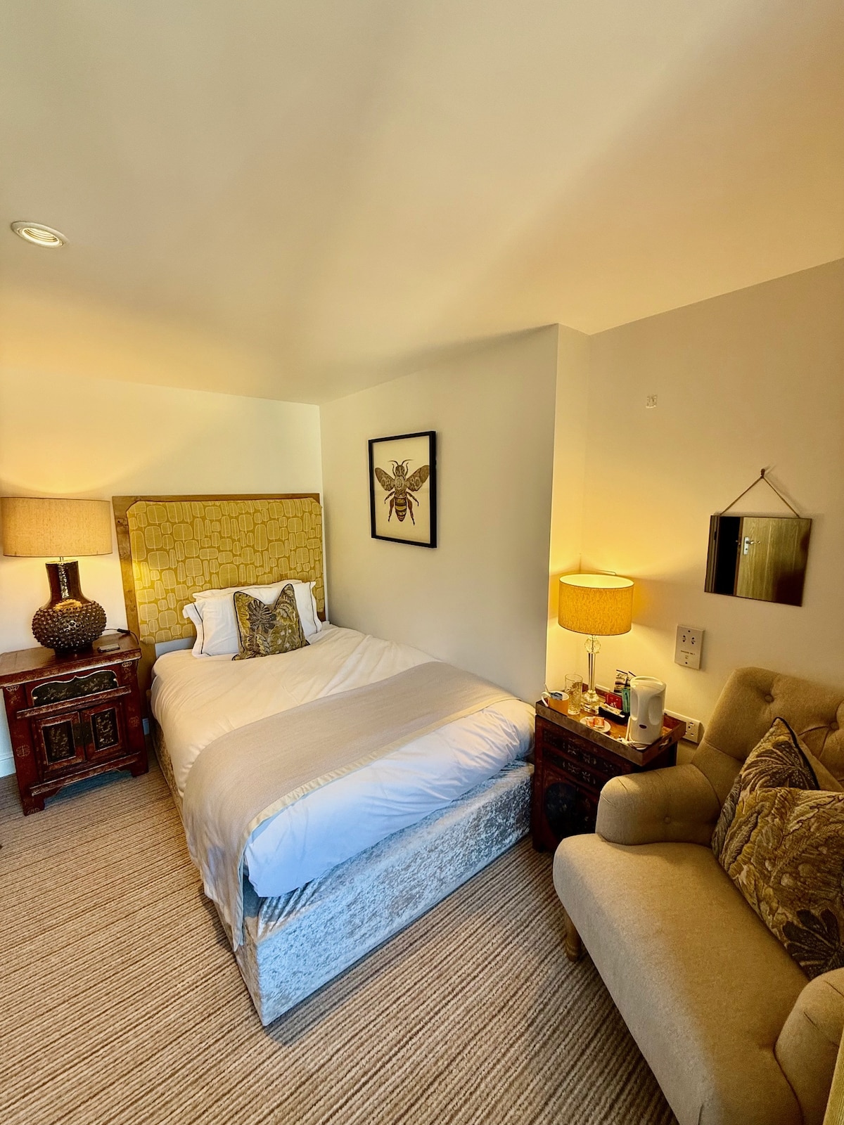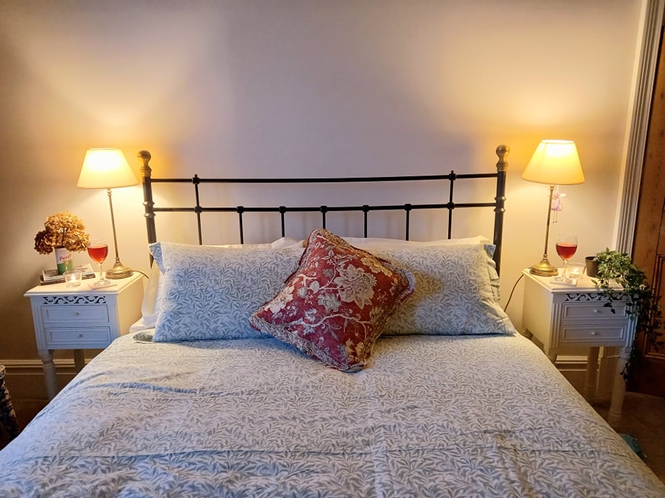 The room is comfortable and stylish with a comfy kingsize bed and a fold up bed for an extra guest. There is a smart TV and radio with tea/coffee making facilities and extra cutlery and plates if you wish to eat in . There is a table for you to enjoy breakfast which will be served in the style of a light continental breakfast. There is a shared bathroom with a shower over the original Victorian bath, ideal for soaking in after a long day out exploring. Fluffy towels and toiletries are provided.