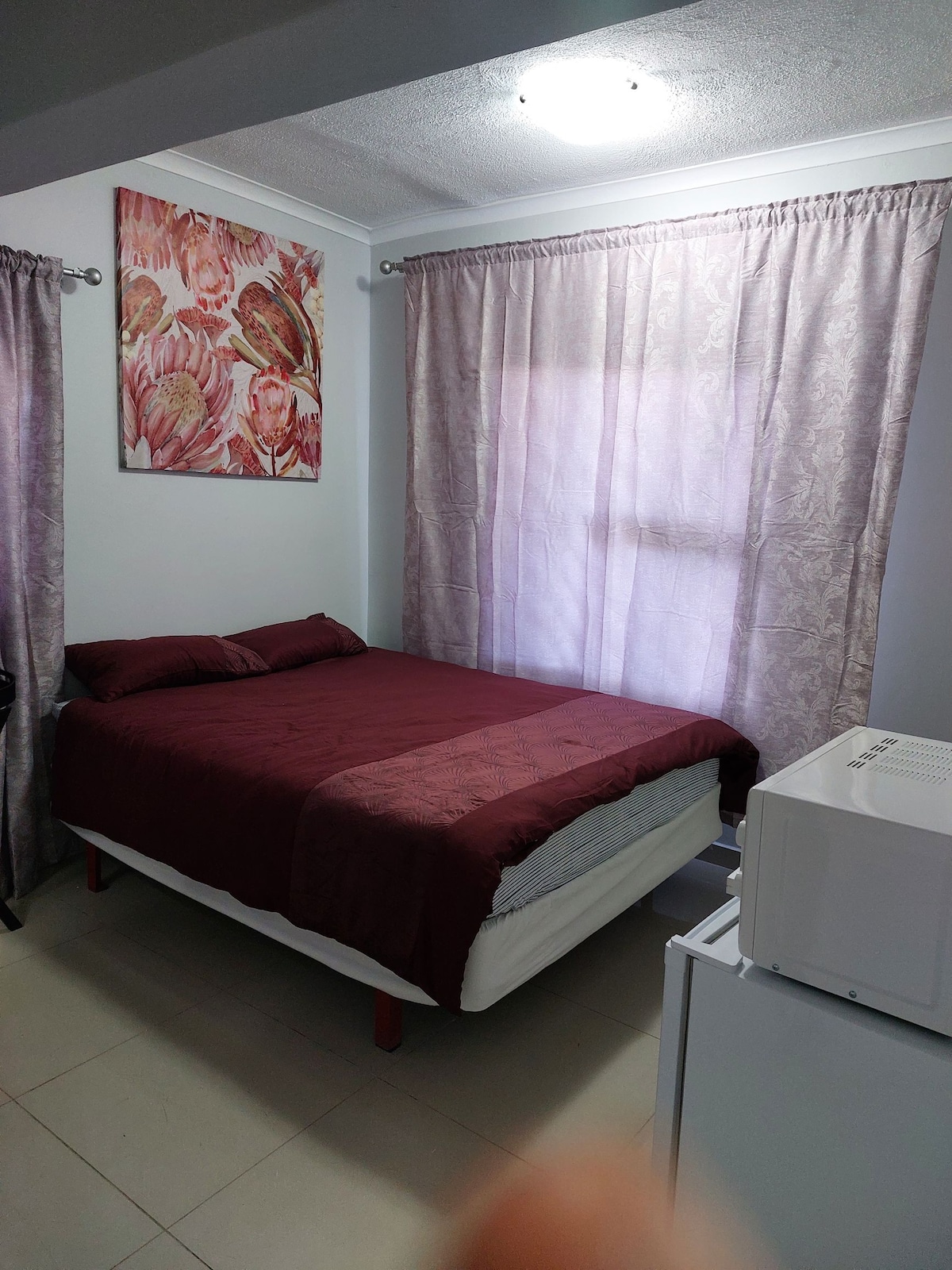 The Lair is a bachelor with a 3/4 bed and shower only bathroom. It’s equipped with a small kitchenette that is very functional. Included in the room is a study/ dinning table as well as a Smart TV with fast WiFi.
