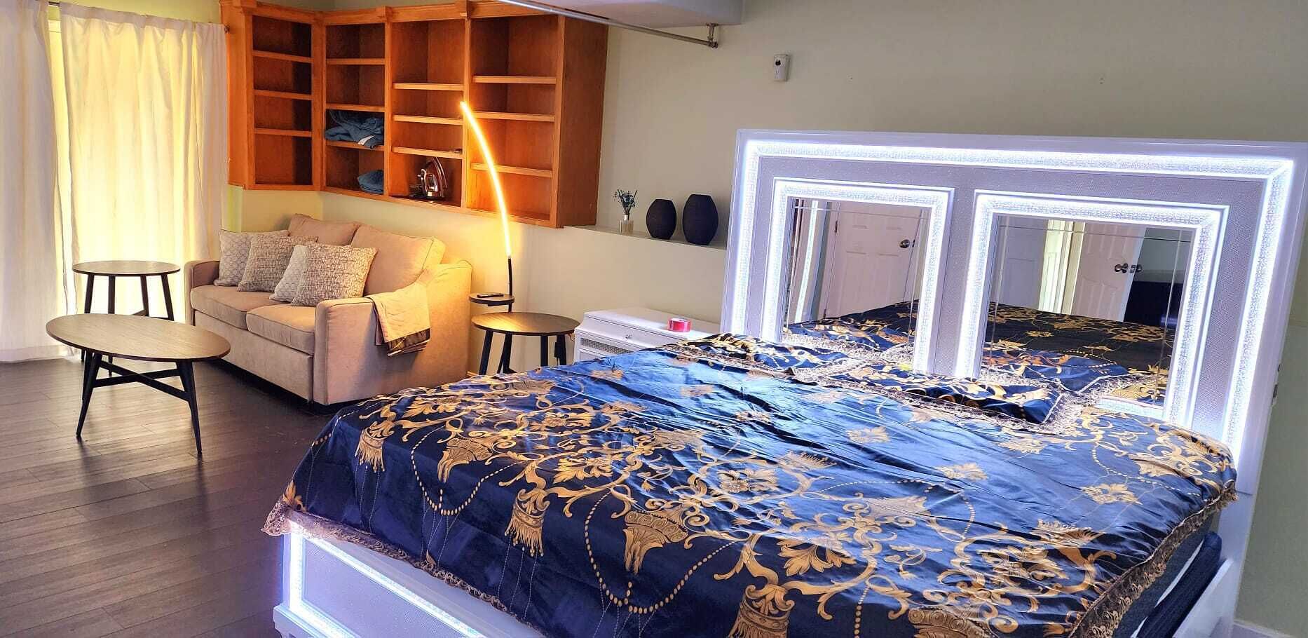 Enjoy your own space, a large room with a king size bed and a living space that can accommodate 3guests. The room has a private spacious bathroom.