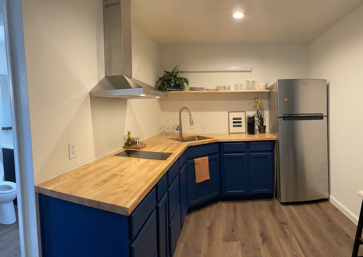 Welcome to our cozy studio – perfect for solo travelers or couples! Enjoy a beautiful, thoughtfully designed space with a smart TV, Keurig coffee maker, hot plate, and a partial but well-equipped kitchen for light cooking. You’ll also have your own washer and dryer for added convenience. Whether you're here to relax or explore, this studio is the perfect home base. Clean, comfortable, and ready for your stay!