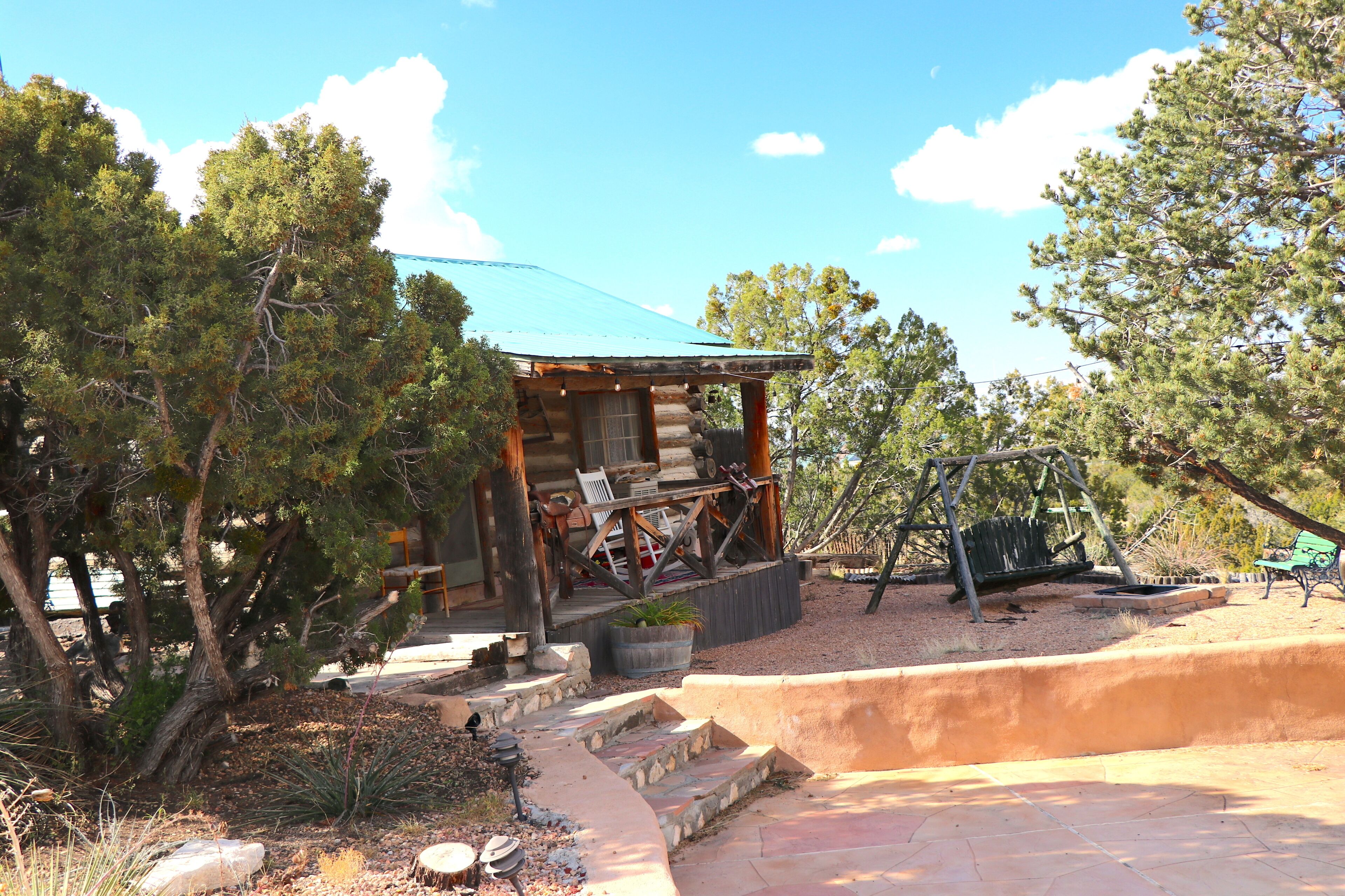 Our historic cowboy cabin originating from the Pecos Forest in 1860 was rebuilt in Placitas in 2009. The property around the cabin has many famous scenes from various different shows, including the series Breaking Bad! Besides the cabin being a one-of-a-kind property, the exterior is pretty awesome as well! Featuring a large pool and large courtyard, it gives for one of the most unique stays here in NM. Located perfectly for a quick commute to Alb or Santa Fe! POOL IS SEASONAL May 1- Aug 20